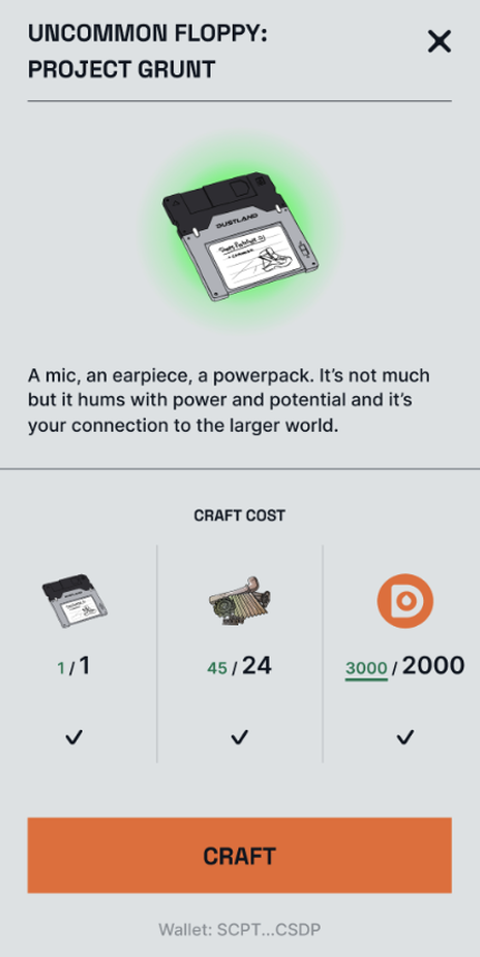 Log into the [Crafting Station](https://bit.ly/dustlandcrafting) with the player's Dustland account email and password. If players have sufficient crafting materials, click “Craft” to start.
